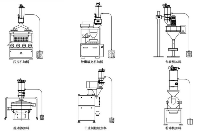 廣泛適用于食品、化工、制藥、塑料、無紡布、化纖、石墨等各行各業(yè)的原料輸送。完美地與包裝機(jī)、注塑機(jī)、粉碎機(jī)、混合機(jī)等設(shè)備的料斗相匹配。